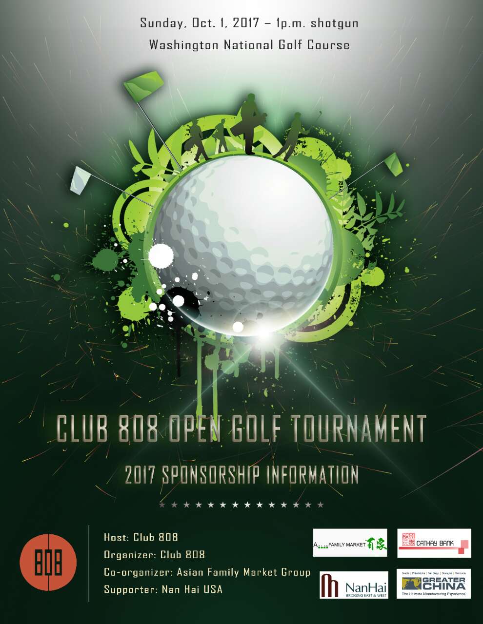 本次公开赛由808 俱乐部主办,百家集团协办,已有国泰银行,大中华实业公司,南海峰会等赞助商踊跃承诺赞助支持此次公开赛。本次公开赛的内容丰富,集竞技,交友,娱乐,推广于一体,发展和推动少年高尔夫运动。 欢迎高尔夫球爱好者与我们一起挥杆,共同享受小白球的快乐。您可以赞助,捐赠,亦或只是来欣赏一下Auburn山谷的令人窒息的美景,和新朋老友以及南海峰会和华州的商界领袖和精英相约相识,汇聚一堂。此次公开赛还将为赞助商提供一流的,与PGA赛如出一辙的宣传平台。以 聚焦,传播,推广的推动方式,为各赞助商有效的扩大其市场影响力及品牌知名度。
