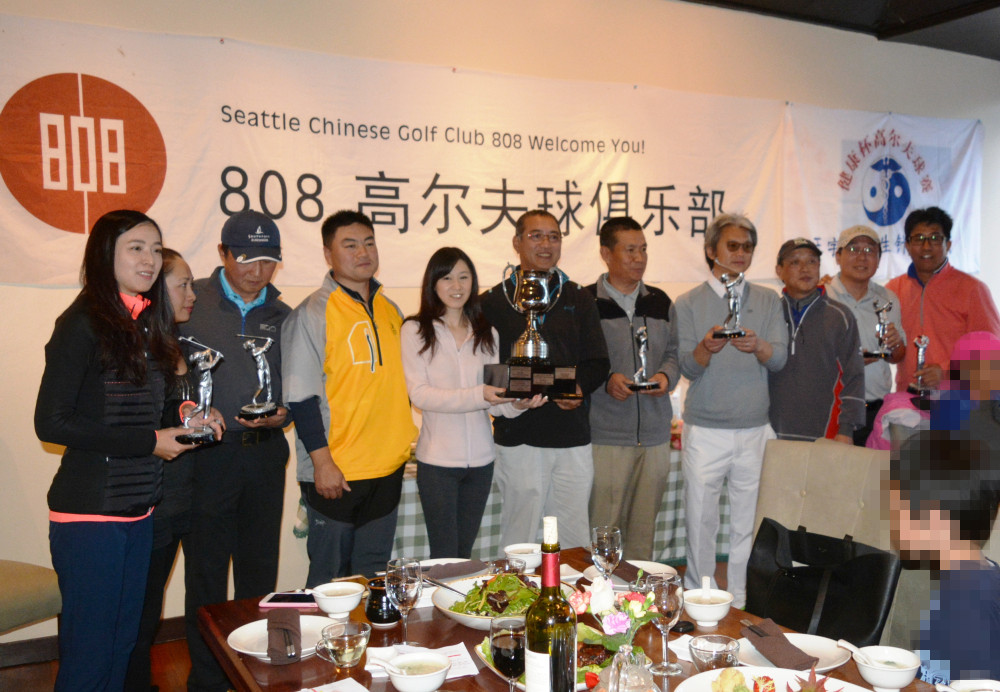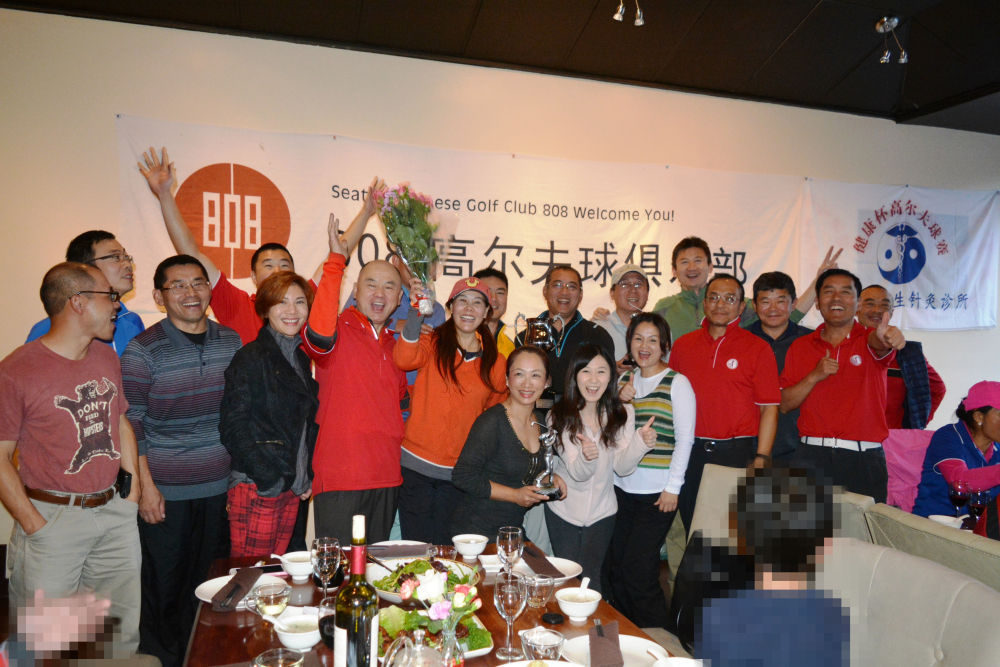 808会长Hugh 谢:昨天808本季的收官赛可以用一个字总结:perfecto!!!1. 大家都经历了西雅图这个周末的台风和雷电雨的预告,但是808的44个Brave Soul还是坚持去打球,虽然刚开始就有点毛毛细雨,但后来我们得到的却是一个艳阳天,这是我今年经历的最温暖的太阳??,上帝被我们感动了。2. 冯姐王宇医生和王爷,不仅从资金上赞助这次比赛,还赞助了他们对808的爱心,王宇医生很早就给我们订好了很特别的奖杯,冯姐老早就开始张罗19洞的晚餐,昨晚大家有目共睹,场地都是冯姐精心布置的。为了这些活动,他们还关闭诊所一天。谢谢冯姐王宇王爷对808的厚爱