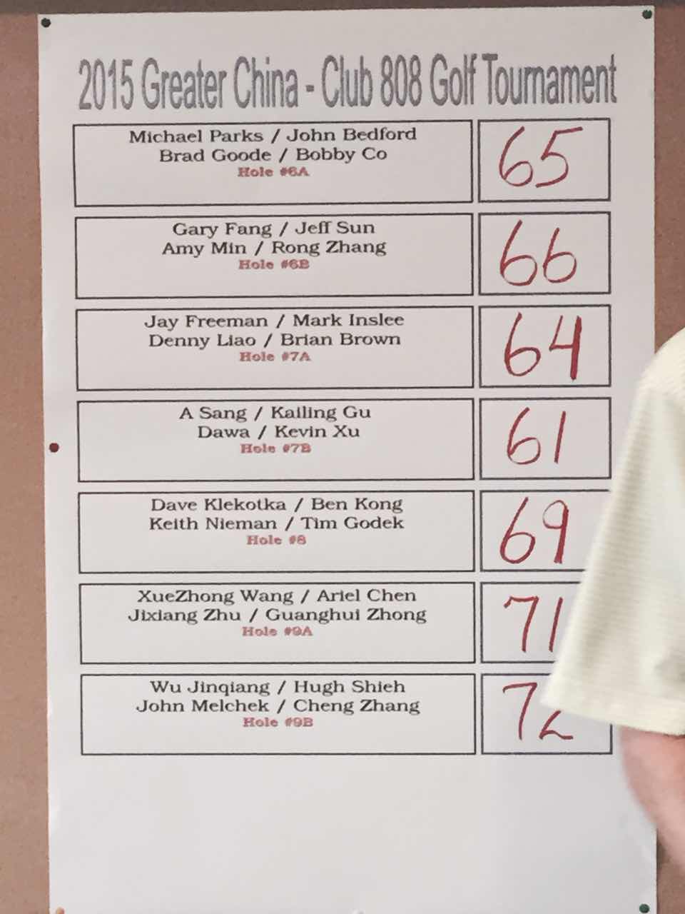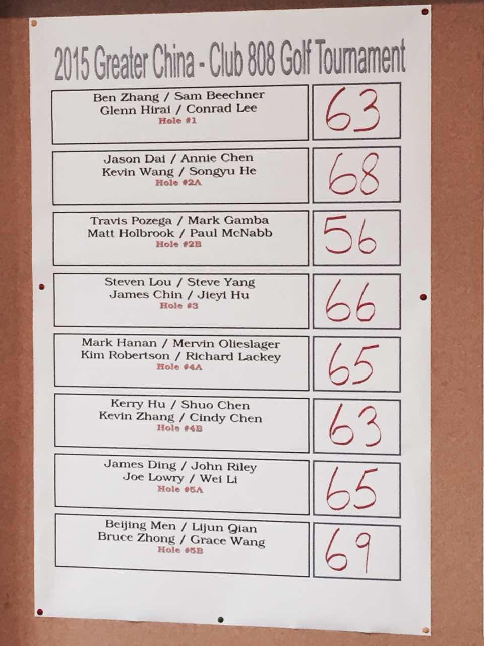 上周五,Club 808 32人参加了大中华公司2015高尔夫比赛。Club808 组织了两个梦之队:楼队带领的蓝队和Kerry 带领的红队,分别打出了66杆和63杆的好成绩。kerry 和Kevin又直又稳,尽显高手风范,8个Birdy如探囊取物。没想到由Kailing组织的外援阵容强大,打出了61杆的好成绩!A sang, Dawa, Kevin xu好样的,欢迎你们明年加入808!最后大中华公司的梦之队技压群芳,以56杆的成绩获得冠军! 厉害!最值得称道的是小将Grace Wang拿到了女子的close to pin, Amy战胜了众多年轻选手,获得女子最长开杆奖! 当中国的纯爷们哑火的时候,女子选手撑起了半边天!